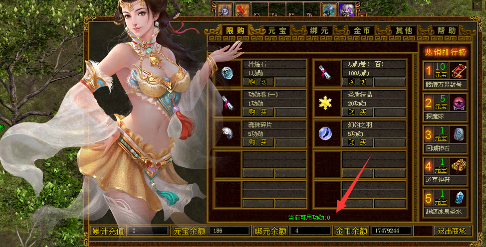 功勋值打开商城(其他类)查询(包括查询功勋点数)