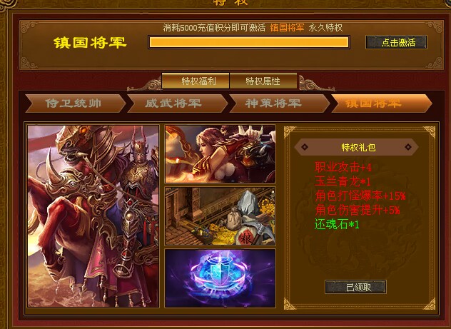 6:镇国将军(5000充值积分开通)